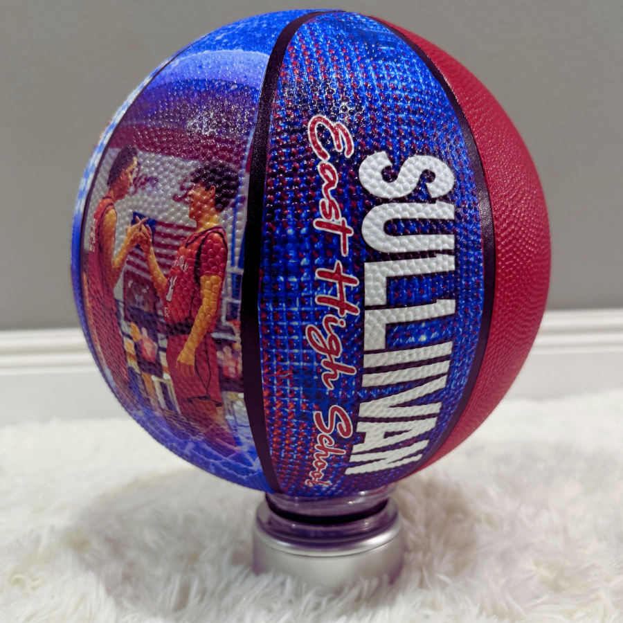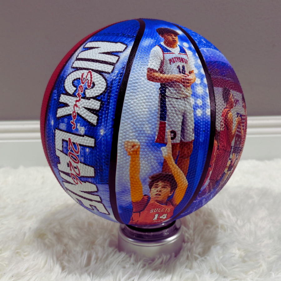 Create a truly unique and memorable gift with our Custom Photo Basketball! Featuring four custom panels with a specialty design, this basketball is perfect for commemorating our grad's senior year, a Coach's basketball accomplishments or a child's end to a great year. Capture and preserve your cherished memories in a fun and creative way.